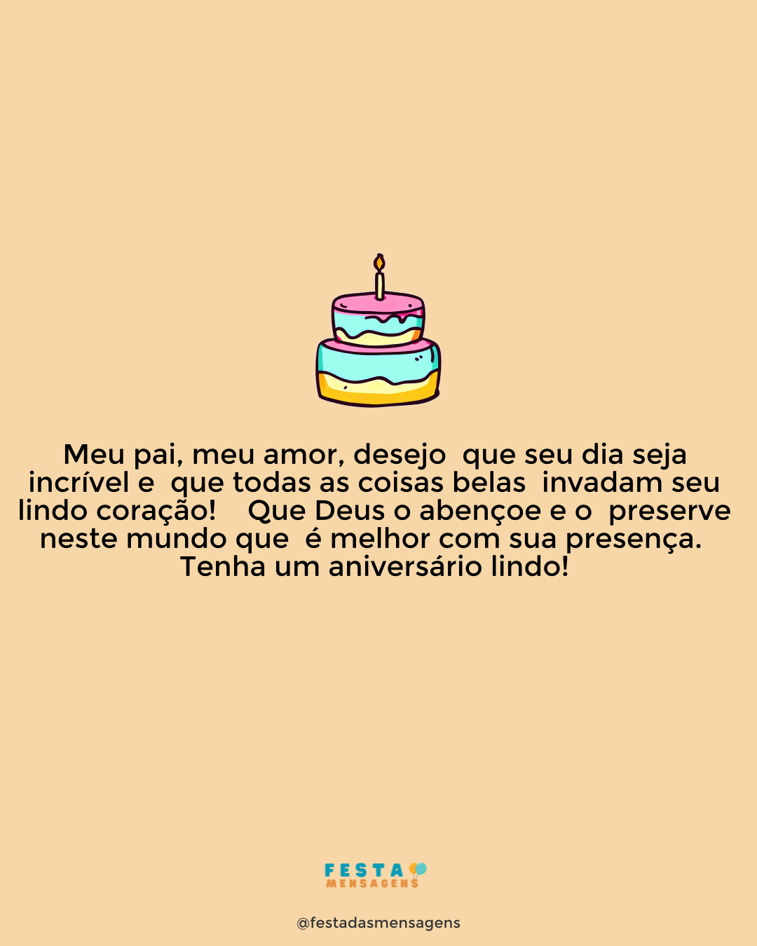 Filha, como é bom pegar você no colo, me perder nos seus olhos e ficar imaginando em tudo que passa na sua cabecinha. De tantas coisas novas, hoje é dia de viver mais uma: seu primeiro aniversário. Só quero que no dia de hoje você sinta como é amada por mim e pela nossa família toda. Este sentimento é o maior do mundo e com ele você pode contar para a vida toda, pois nunca se esgotará. Filha, parabéns pelo seu aniversário de 1 ano. Você é o melhor presente que já recebi na vida. Amo muito você!